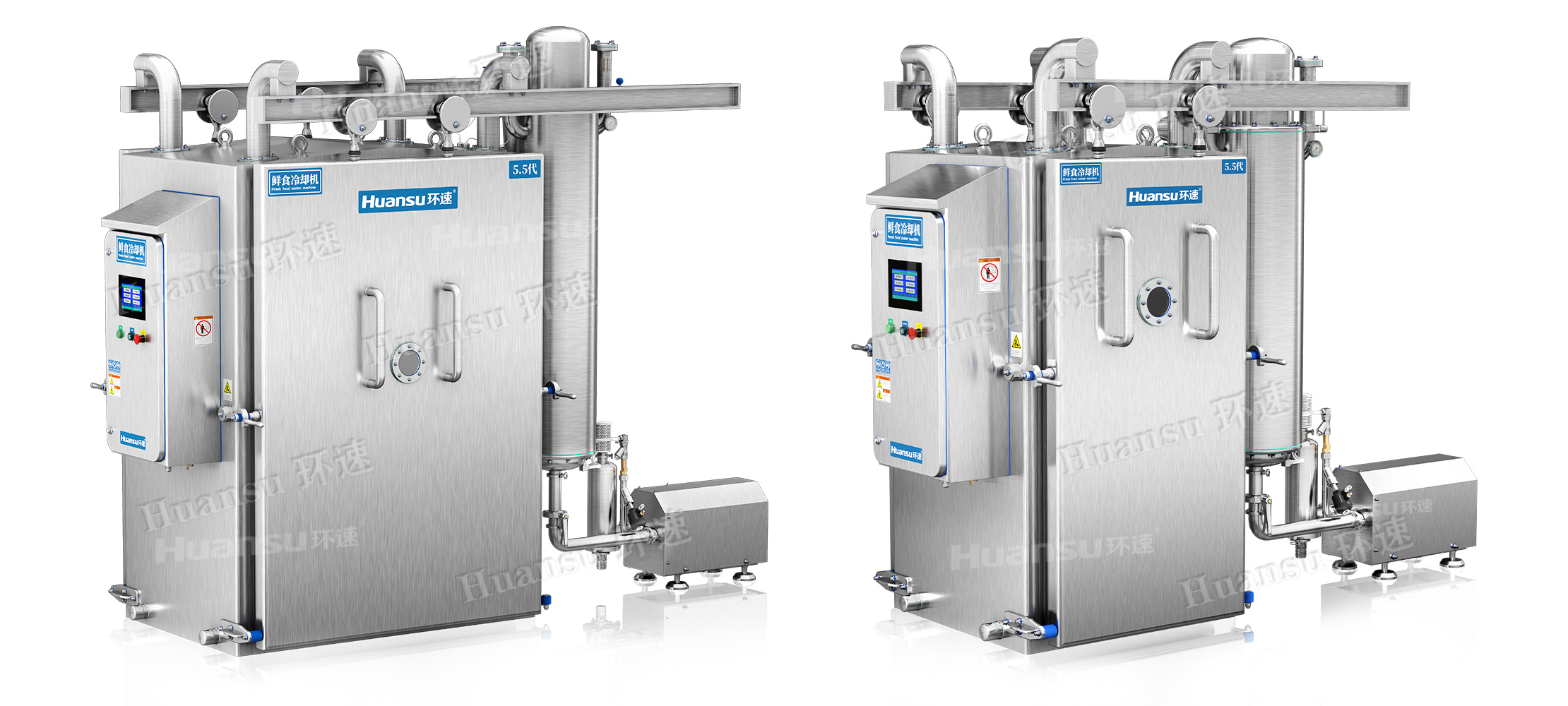 鮮食冷卻機通過(guò)水環(huán)泵、蒸汽射流和高效率換熱器三級抽真空形式,實(shí)現了快速、高效率、節能的真空系統,能用較低的能源使真空室內快速達到真空狀態(tài),使食品內的熱量可以在短時(shí)間內釋放出來(lái),實(shí)現了節能低耗的效果。歐洲IP69K衛生等級隔離艙,增加了設備的衛生等級,避免了食品在真空箱內被二次污染的可能性。