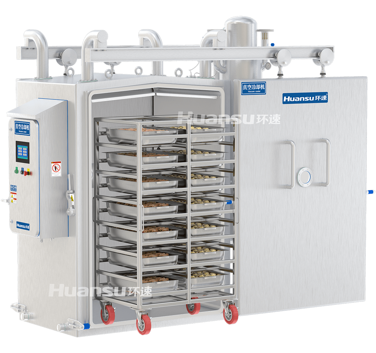 環(huán)速真空冷卻機:紅燒獅子頭冷卻的破局利器 面對傳統冷卻方式的種種弊端,環(huán)速真空冷卻機應運而生,為紅燒獅子頭預制菜行業(yè)帶來(lái)了全新的解決方案。它通過(guò)精準控制真空度與溫度曲線(xiàn),能夠快速完成控菌冷卻,讓每一個(gè)紅燒獅子頭從出鍋到包裝實(shí)現“時(shí)間折疊”,大大減少品質(zhì)損耗。 水分守護:鎖住鮮嫩,告別干柴 傳統冷卻過(guò)程中,紅燒獅子頭內部水分向表面遷移,導致芯部硬度增加,口感變差。環(huán)速真空冷卻機采用先進(jìn)的“真空冷卻”技術(shù),在低壓環(huán)境下定向抽離表面蒸汽,有效減少水分在表面的聚集。同時(shí),內部水分被離子鍵鎖定,淀粉回生速率低,使得獅子頭內外均勻降溫,柔軟度差別小,口感鮮嫩多汁,如同現做一般。咬上一口,肉餡里的汁水四溢,讓人回味無(wú)窮。