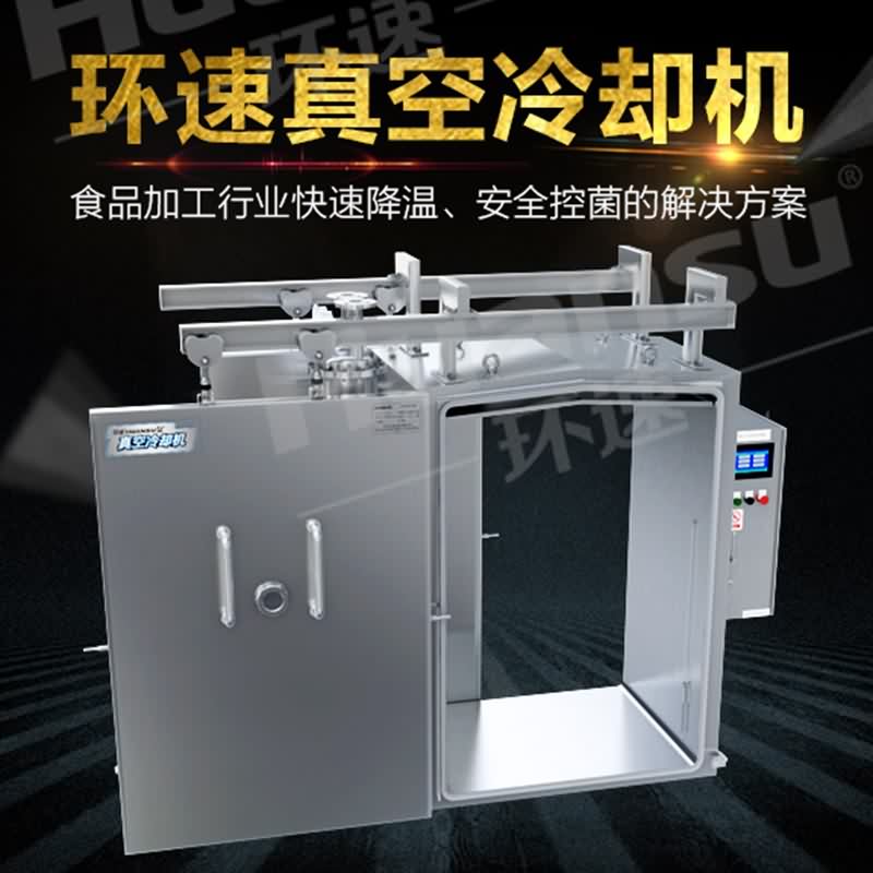 全自動(dòng)真空預冷機裝置基本構成:真空處理室、真空系統、制冷系統及控制系統四大部分組成。真空處理室即真空處理槽,通常分為筒形和箱型。河北米飯真空冷卻機內側材質(zhì)根據冷卻物品性質(zhì)決定,一般由碳鋼或者不銹鋼制成;外側由高強度矩形鋼管和槽鋼焊接并噴涂高強度防銹材料。真空系統即抽氣系統,由真空泵和管路組成,現場(chǎng)連接電源和管道后,通過(guò)PLC程序控制系統實(shí)現全自動(dòng)化控制。